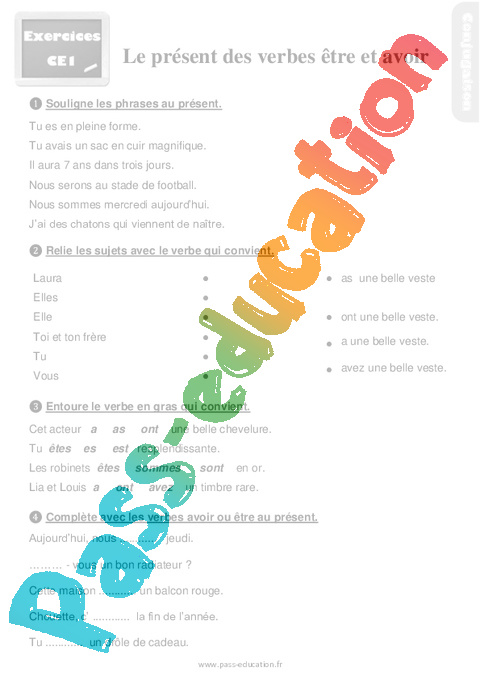 Exercices : Primaire 2 sur le présent des verbes être et avoir pdf
