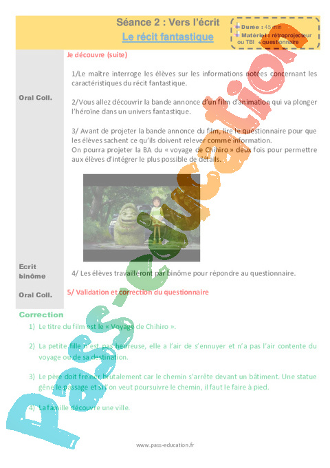 Fiche de préparation : Primaire 4, 5 – Le récit fantastique pdf