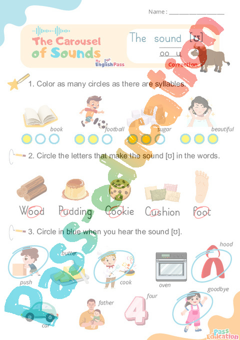 Correction Le son [ʊ] oo u – Phonologie anglaise – Carousel of Sounds – Fiche pdf
