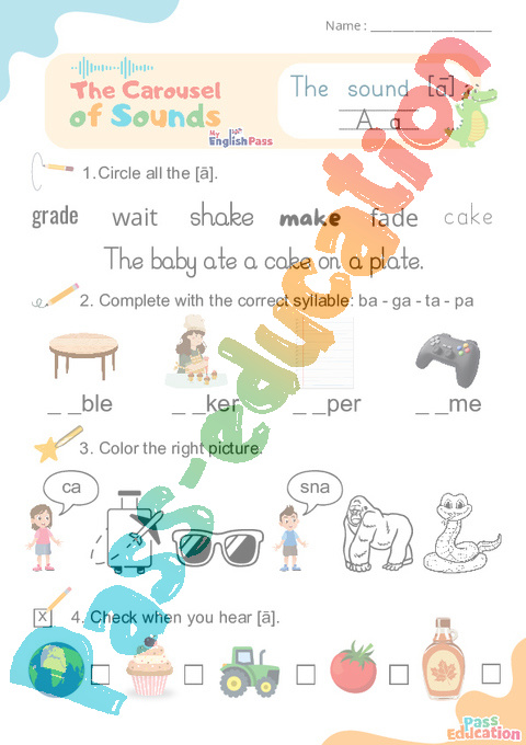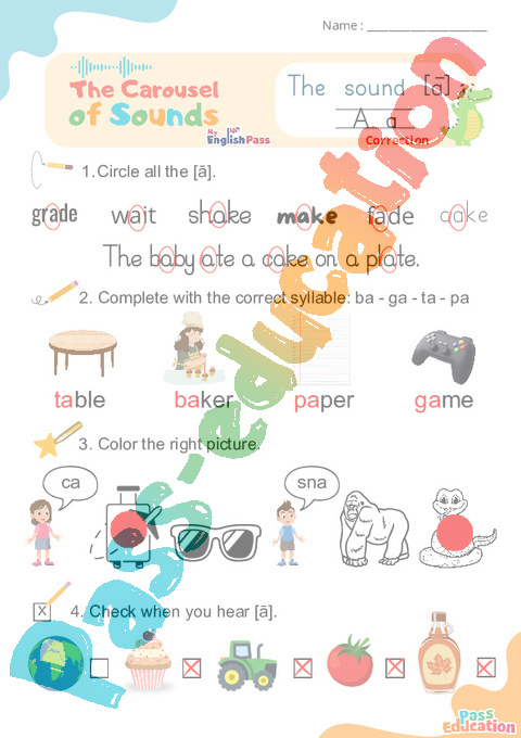 Correction Le son [ā] A a – Phonologie anglaise – Carousel of Sounds – Fiche pdf