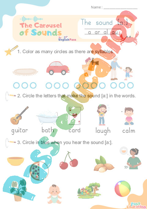 Le son [a:] a ar al au – Phonologie anglaise – Carousel of Sounds – Vidéo interactive + Fiche : Maternelle 2, [Primaire]