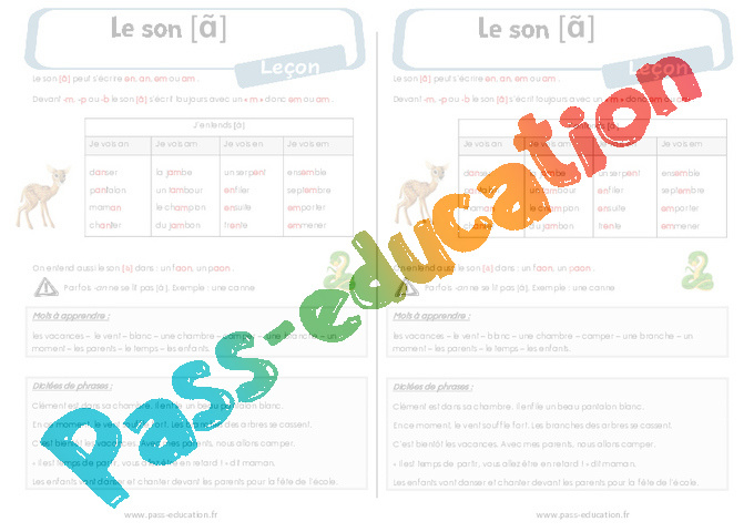 5 - Leçon : Primaire 2, 3 son [ã] A4 pdf
