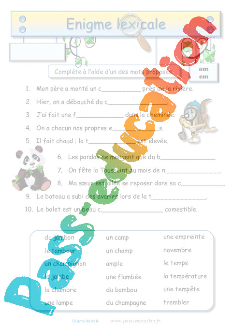 Le son [am em] : Primaire 2, 3 – Enigmes lexicales pdf