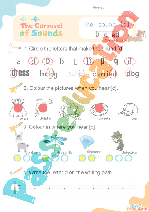Correction Le son son [d] d dd ed – Phonologie anglaise – Carousel of Sounds – Fiche pdf
