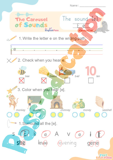 Correction Le son [e] – e simple – Phonologie anglaise – Carousel of Sounds – Fiche pdf