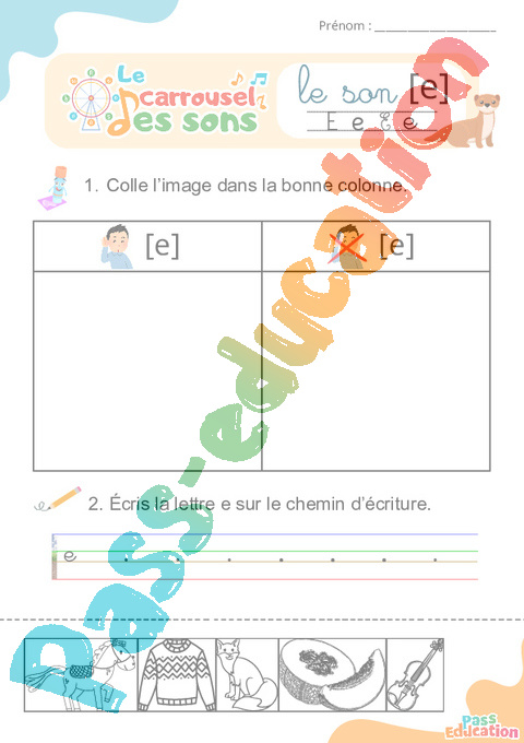 Exercices en ligne – Jeu éducatif pour apprendre le son [e] + fiches à imprimer.