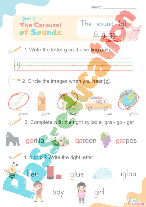 Correction Le son [g] g gg – Phonologie anglaise – Carousel of Sounds – Fiche pdf