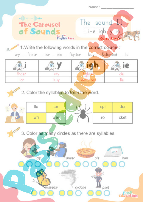 Correction Le son [ī] i i-e igh y ie – Phonologie anglaise – Carousel of Sounds – Fiche pdf