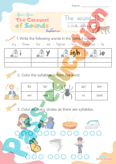 Le son [ī] i i-e igh y ie – Phonologie anglaise – Carousel of Sounds – Fiche pdf