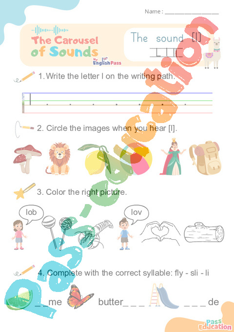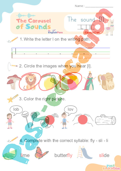 Correction Le son [l] L l ll – Phonologie anglaise – Carousel of Sounds – Fiche pdf