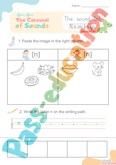 Correction Le son [n] nn kn gn – Phonologie anglaise – Carousel of Sounds – Fiche pdf