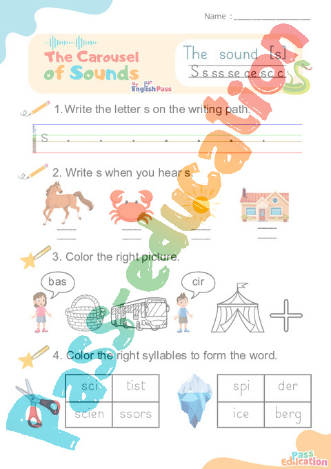 Le son [s] s ss se ce – Phonologie anglaise – Carousel of Sounds – Fiche pdf