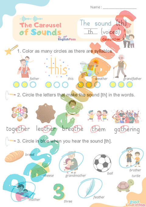 Correction Le son [th] – Phonologie anglaise – Carousel of Sounds – Fiche pdf