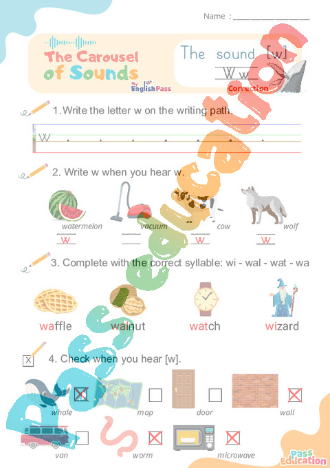Correction Le son [w] – Phonologie anglaise – Carousel of Sounds – Fiche pdf