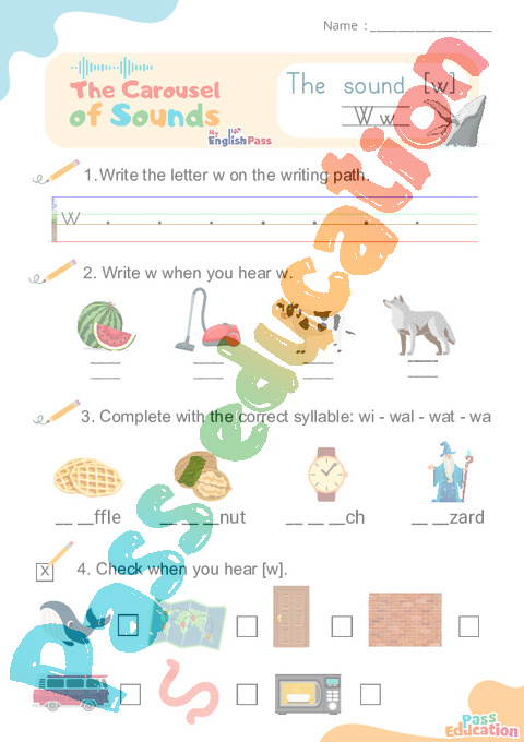 Le son [w] – Phonologie anglaise – Carousel of Sounds – Vidéo interactive + Fiche : Maternelle 2, [Primaire]