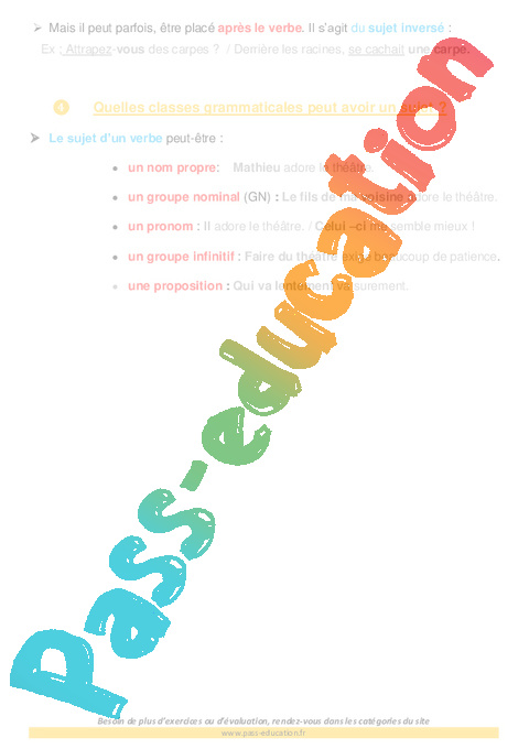 Le sujet du verbe : Primaire 5 -Accompagnement scolaire pdf