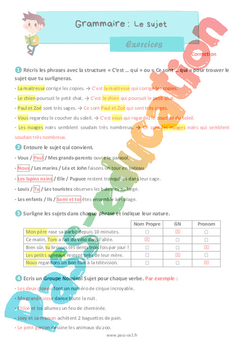 Correction Exercices Le sujet : Primaire 3 pdf