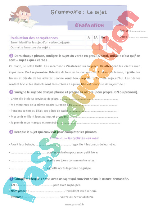 Evaluation Le sujet : Primaire 3 pdf