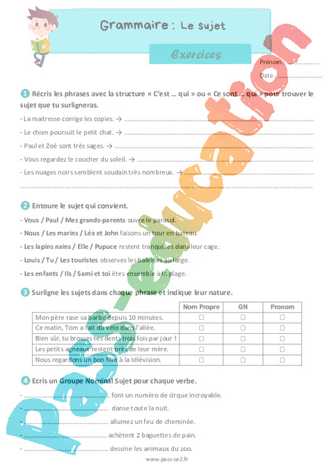 Exercices Le sujet : Primaire 3 pdf
