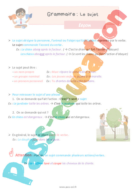 Leçon de grammaire pour la Primaire 3 sur le sujet.