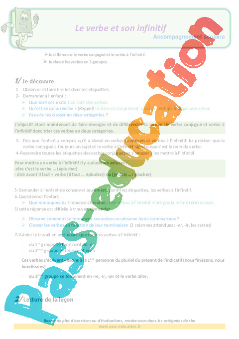 Le verbe et son infinitif (révisions): Primaire 2 -Accompagnement scolaire pdf