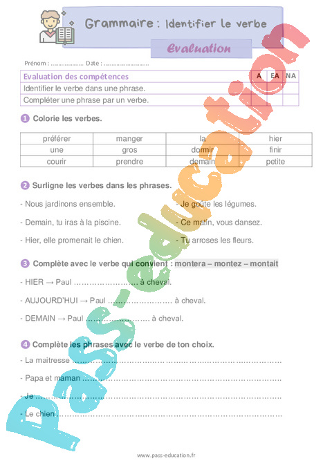 Evaluation : Primaire 2 Identifier le verbe pdf