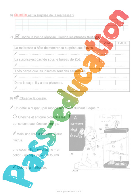L’élevage de phasmes : Primaire 1, 2 – Mes premiers pas en lecture Correction pdf