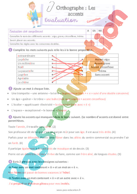 Correction Evaluation – Les accents : Primaire 4 – Soutien scolaire pdf