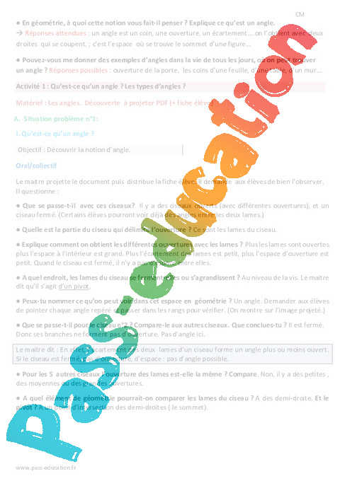 Découverte à projeter : Primaire 5 – Les angles pdf