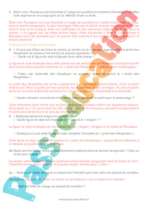 7. Selon vous, Rousseau est-il favorable à l’usage des punitions en matière d’éducation ? Justifiez.