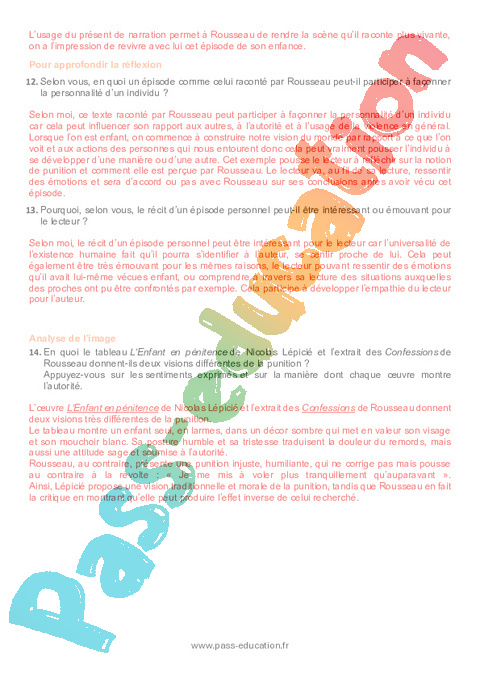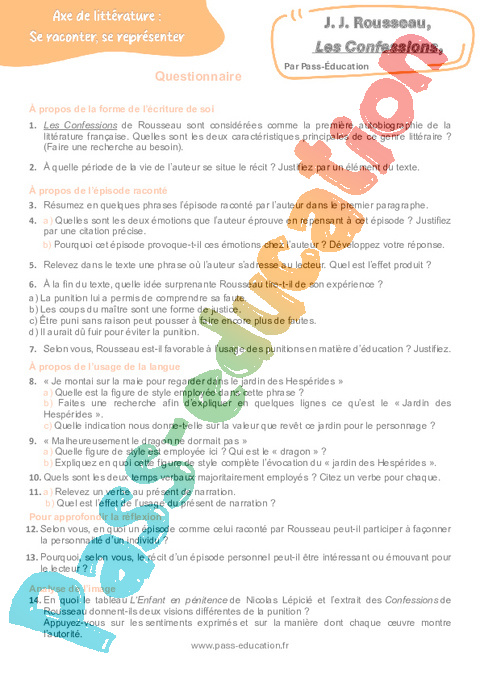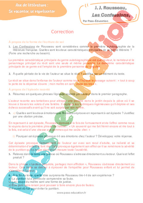 Correction Questionnaire Les Confessions (J. J. Rousseau) : Secondaire 3 pdf
