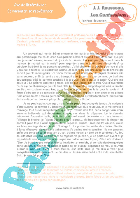 Littérature Les Confessions (J. J. Rousseau) : Secondaire 3 rtf