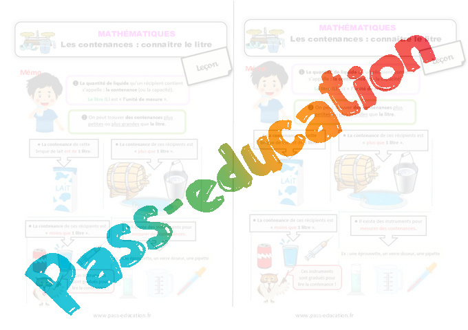 Retrouvez la leçon sur « Les contenances : connaître le litre » en Primaire 2