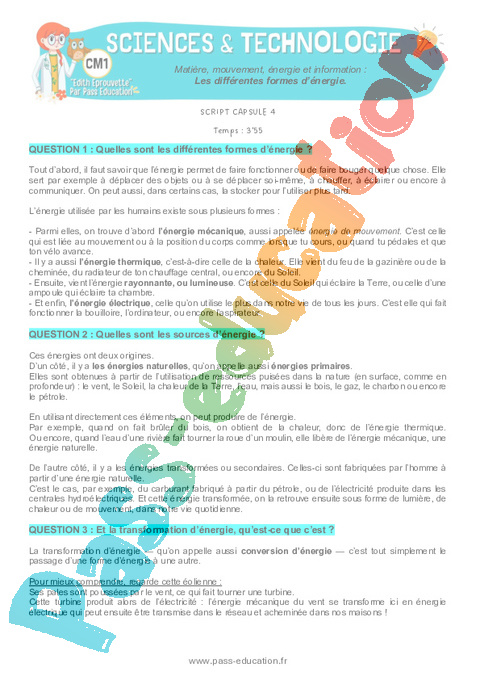 2 Script : Primaire 4 Les différentes formes d’énergie pdf