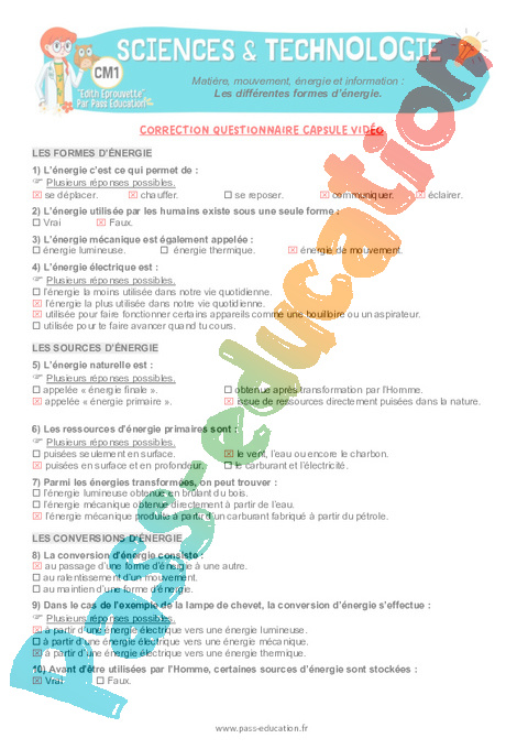3.1 Correction QCM capsule vidéo : Primaire 4 Les différentes formes d’énergie pdf