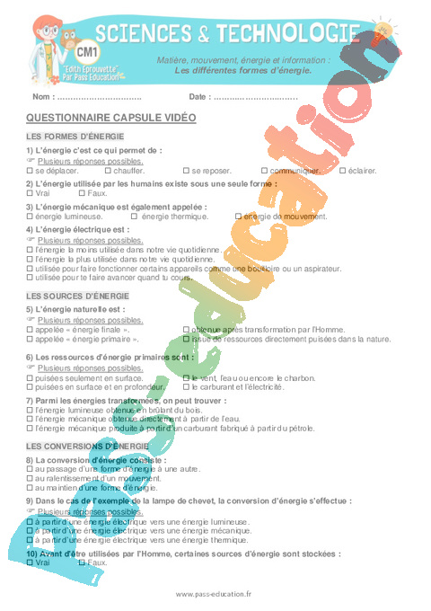 3 QCM capsule vidéo : Primaire 4 Les différentes formes d’énergie pdf