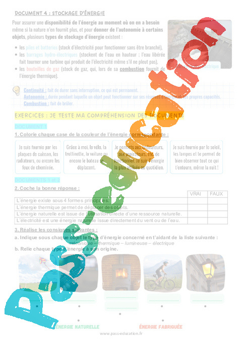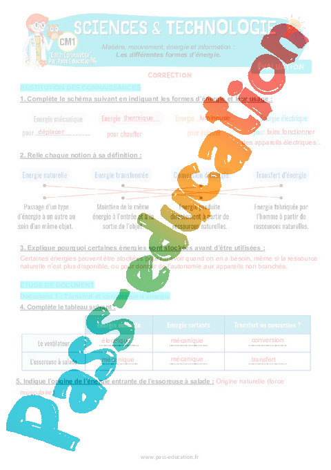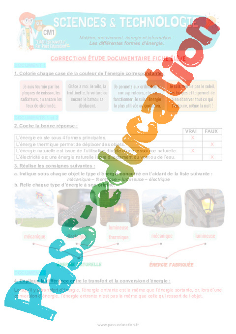 4.1 Correction Fiche Elève : Primaire 4 Les différentes formes d'énergie pdf
