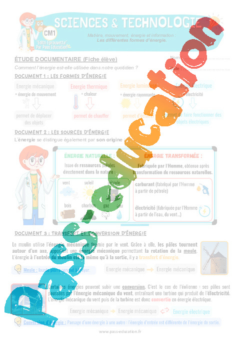 4 Fiche Elève : Primaire 4 Les différentes formes d'énergie pdf
