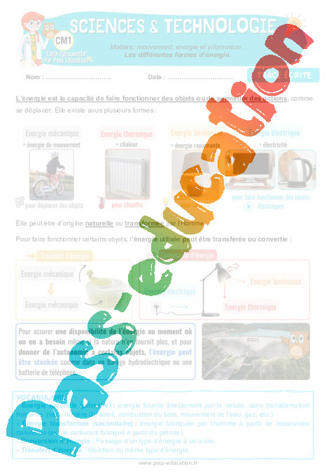 5 Trace écrite : Primaire 4 Les différentes formes d'énergie pdf
