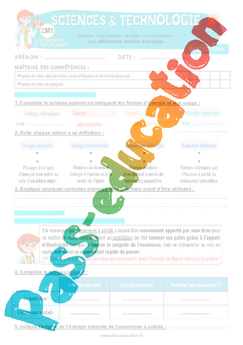6 Evaluation : Primaire 4 Les différentes formes d'énergie pdf