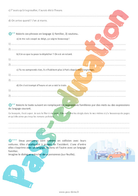 Correction Exercices 6ème Les différents niveaux de langue pdf