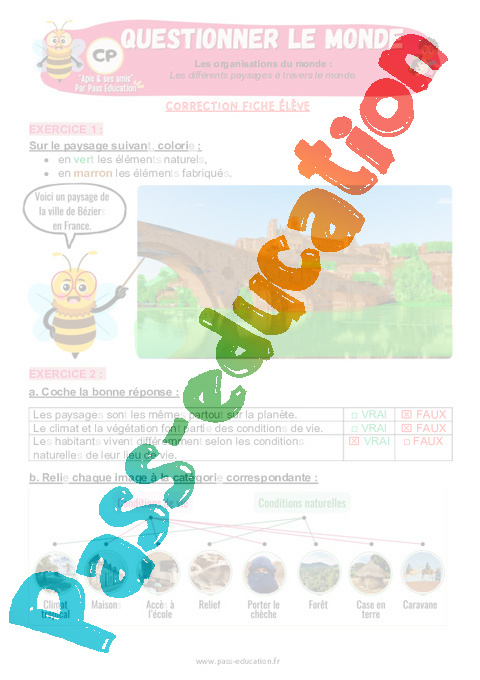 4.2 Correction Fiche Elève : Primaire 1 Les différents paysages à travers le monde pdf