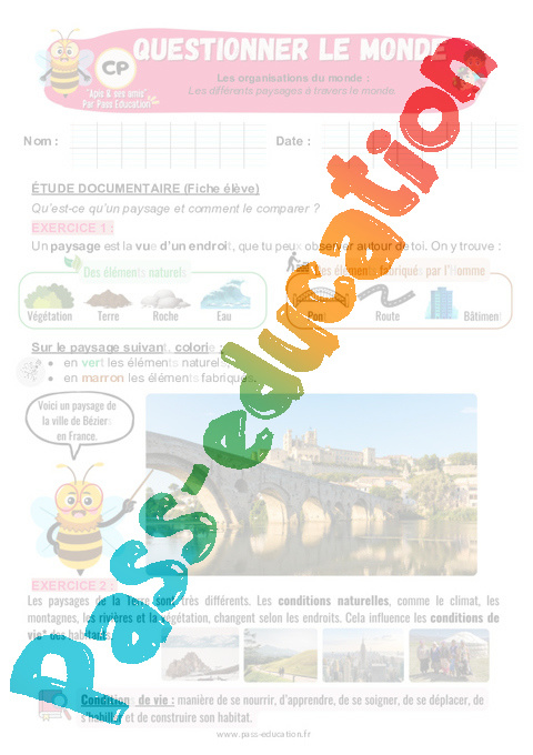 Exercices – Les différents paysages à travers le monde : Primaire 1 – Apis & ses amis.