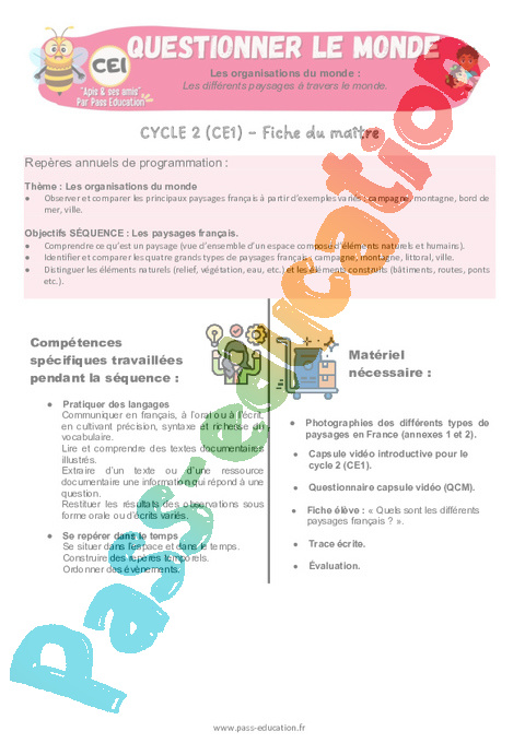 3 QCM capsule vidéo : Primaire 2 Les différents paysages à travers le monde rtf
