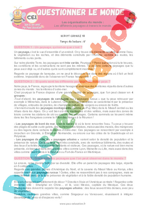 2 Script : Primaire 2 Les différents paysages à travers le monde pdf