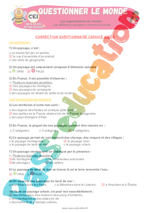 3.1 Correction QCM capsule vidéo : Primaire 2 Les différents paysages à travers le monde pdf