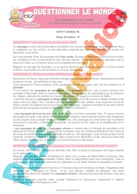 2 Script : Primaire 3 Les différents paysages à travers le monde pdf