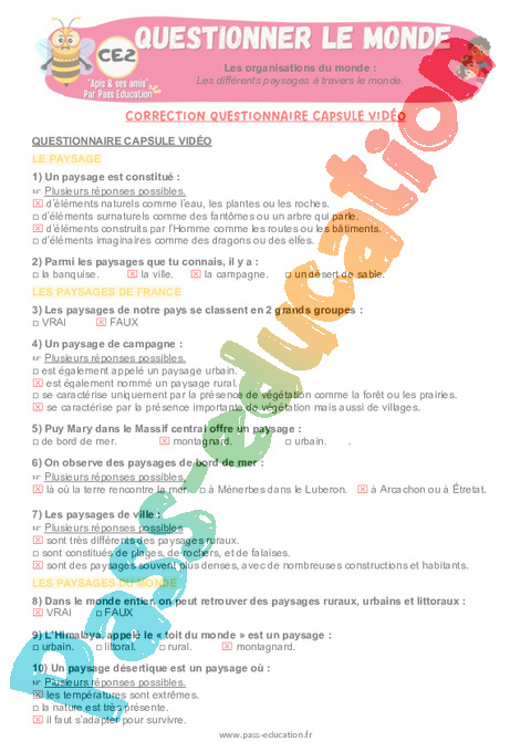 3.1 Correction QCM capsule vidéo : Primaire 3 Les différents paysages à travers le monde pdf