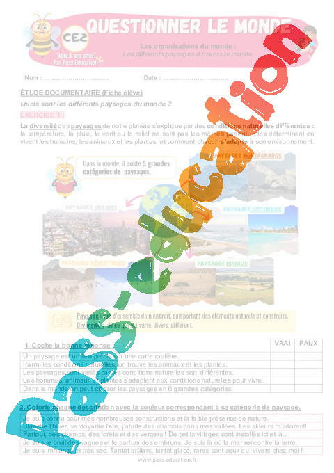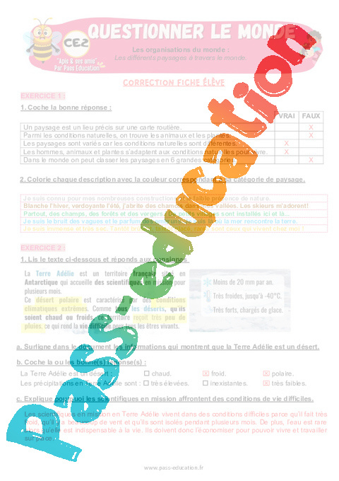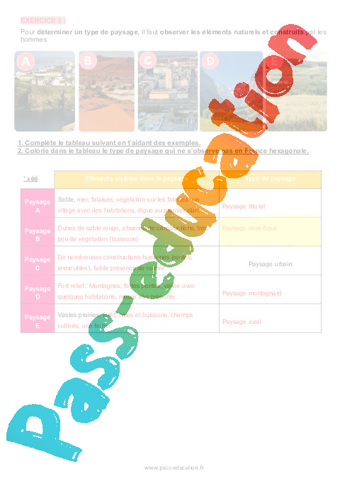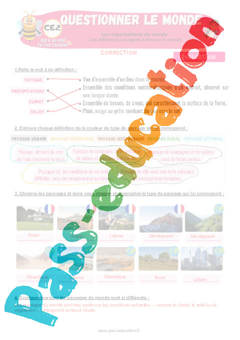 4.1 Correction Fiche Elève : Primaire 3 Les différents paysages à travers le monde rtf