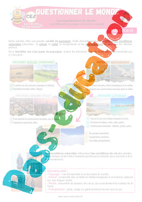 5 Trace écrite : Primaire 3 Les différents paysages à travers le monde rtf